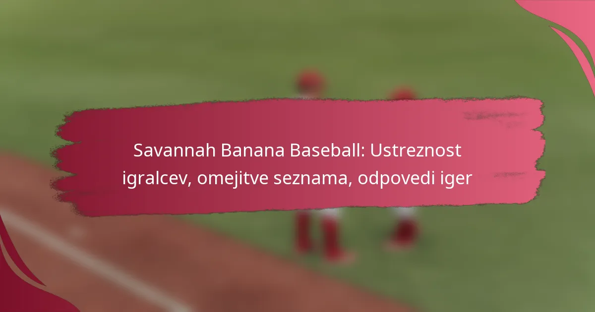 Ekipa Savannah Banana Baseball je vzpostavila specifična merila za upravičenost igralcev, vključno z omejitvami glede starosti in pričakovanji glede spretnosti, da zagotovi pošten postopek zaposlovanja. S tipično velikostjo ekipe okoli 30 igralcev ekipa ohranja prilagodljivost, hkrati pa spodbuja konkurenčnost. Poleg tega je razumevanje pogojev, ki lahko vodijo do odpovedi iger, kot so težave z upravičenostjo in kršitve sestave ekipe, ključnega pomena za ekipe, da se izognejo kaznim in zagotovijo nemoten potek sezone.