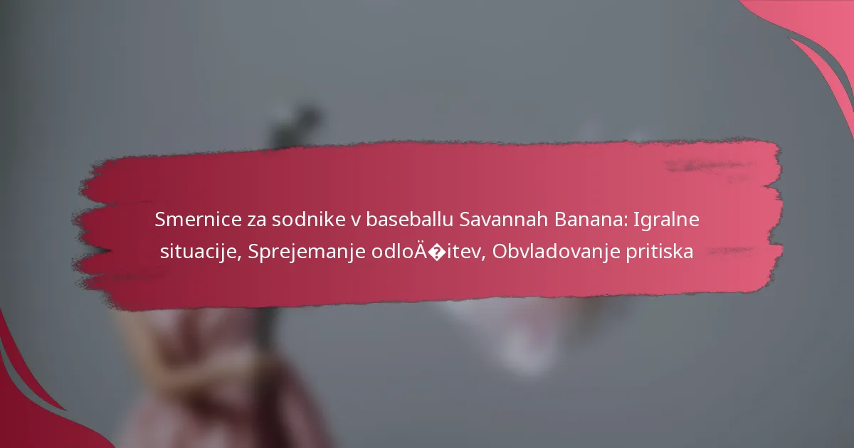 Ključne smernice za sodnike v igrah Savannah Banana se osredotočajo na razumevanje edinstvenih pravil igre, obvladovanje specifičnih mehanik sojenja in učinkovito upravljanje situacij v igri. Sodniki morajo biti pripravljeni na hitro odločanje pod pritiskom, hkrati pa ohranjati jasno komunikacijo z igralci in trenerji.